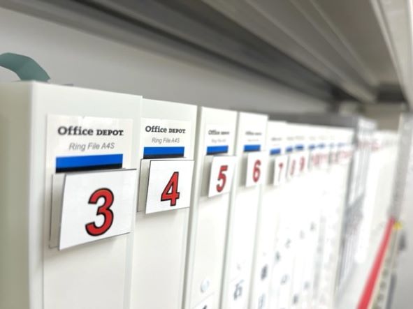 改善後:ファイルのナンバリングをマジックテープにし、ナンバリングの移動を可能にし、ファイルの入れ替えなどを容易にできるようにしました。 - 改善前