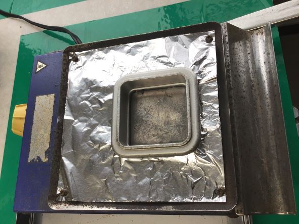 改善後:飛び散るハンダを、アルミを敷くことでカバーして、アルミだけを取り替えることにしました。