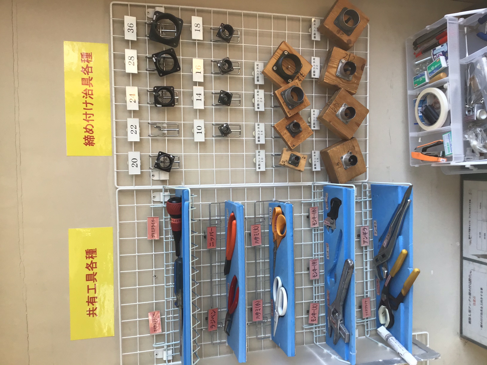 写真の物は100均で全て揃いました。どれだけの物が必要かは、治具の数を見てから見積りします。 - 改善前