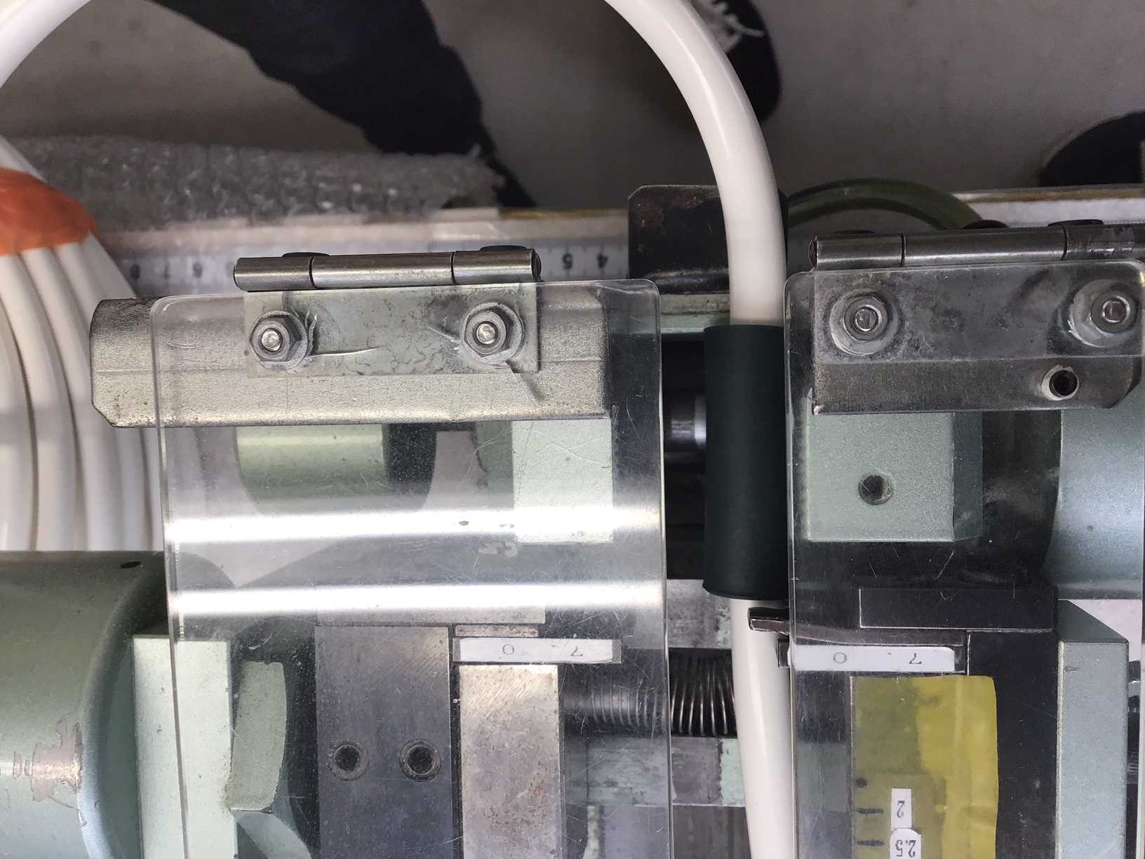 改善後:前の皮むきでは詰まりぎみで手間どる時が多くあったので、普通のストリッパーで汚れが付かないようにクランプゴムを活用しました。早く剥けて効率がとても良くなりました。