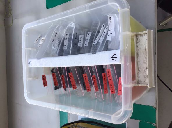 改善箇所:大きさ、長さ別にカットした収縮チューブ(日研以外の仕事)の収納BOX