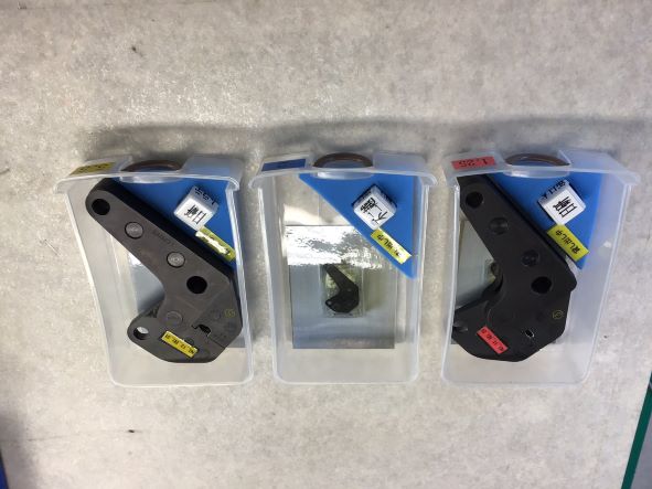 改善後:各チームの名前入りサイコロを横にはめて、持って行くときに名記するようにしました。(日研にあるときは、日研のネームで置いておきます。) - 改善前
