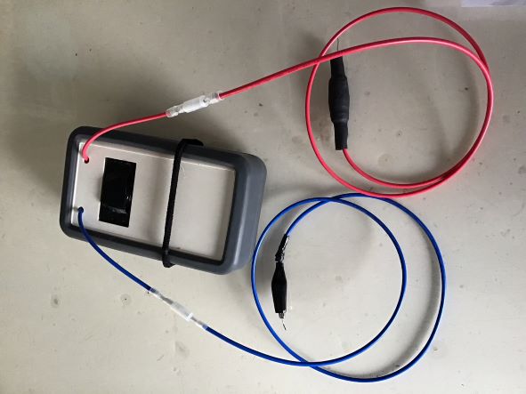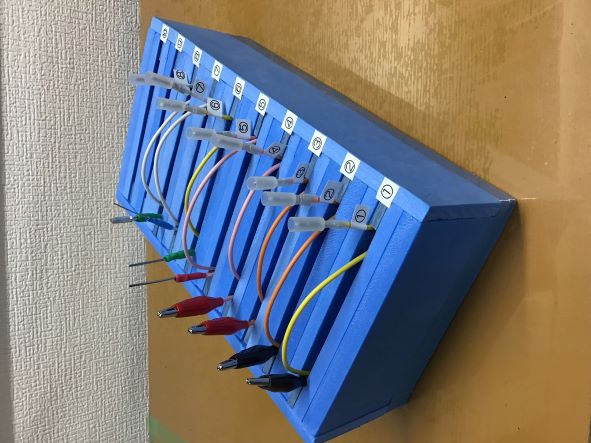 改善前:検査する物によって、ワニ口クリップなどを使い分けられるように、スリーブを使って二股にしていたが、使用前に線が絡まってしまったり、使用後収納のために巻き取るのが時間がかかる。